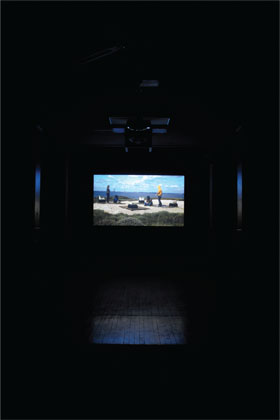 Adam Chodzko In Adam Chodzko's film Echo, the artist tells the story of the children of Governors Island military personnel who secretly gather in the basement of the Officers' Club to play an invented game. The object of the game is to be the apparent loser in a deal: a car is swapped for a joke; a house for a view. Our dominant economic value system is turned on its head in Chodzko's film, and the person who rids her or himself of the most material possessions is the one who comes out on top. The film echoes the initial trade of Governors Island by Native Americans to Dutch settler Wouter van Twiller for "two axe heads, a string of beads, and a handful of nails," and the 2003 sale of the island by the Federal Government to the people of New York State for just one dollar. Chodzko's film, which blends original and archival footage, proposes new relationships between our emotional and economic value systems, the communal and private spaces that generate these systems, and the documents and fictions that describe and guide them. |