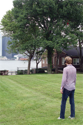 Guido van der Werve Guido van der Werve's films Number Four and Number Seven, selections from his "Numbered Films" series (2003-09), follow the artist as he navigates the elaborate terrain of what he calls "possible scenarios of imaginary realities." Combining a sense of dramatic suspense with poetic and incongruous activities, the artist deftly builds up an atmosphere of melancholy that can suddenly transition into light-hearted absurdity. The films suggest that, with every journey, it is impossible to return to one's place of origin fully unchanged. As visitors return from Governors Island back to Manhattan or Brooklyn, they too have been indelibly altered-perhaps in the subtlest of ways-by the adventure. |