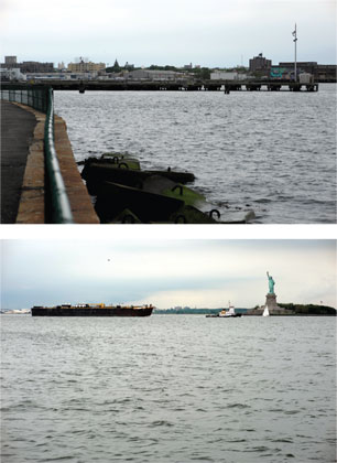 Susan Philipsz By My Side is an original recording, in two-part harmony, of a song of the same name from the 1971 musical Godspell. Both parts of the harmony are sung by the artist, and play from speakers on Lima Pier, directed toward the Statue of Liberty and the waterfront of Governors Island. "I have chosen to sing a devotional song, a song of love and adoration that addresses the statue directly," the artist said about this project. The song asks, "Where are you going? / Where are you going? / Can you take me with you?" The female character in Godspell who sings "By My Side" is a cast-out, and the artwork can be interpreted as the melancholy yearning of a lone figure on a disused pier who can only watch as people and ships pass by. This outsider character is mirrored in the position of the Statue of Liberty, standing apart from the city and watching over the harbor. |