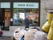 Ava Bromberg (AB): As you know, but your readers might not, Mess Hall is an experimental cultural space operating out of a storefront in the Roger’s Park neighborhood on the far north side of Chicago. We started in the summer of 2003 with eight “keyholders” and a few basic founding principles. We wanted to extend our landlord’s initial act of generosity—he gives us use of the storefront rent-free—to build up a non-commercial space where people would be encouraged to share their skills, ideas, food, and personal and professional surpluses of all sorts. We agreed never to ask for donations at the door or “pass the hat.” From the beginning we wanted Mess Hall to be a place for activities that had nowhere else to go in Chicago. Ppeople continue to propose programs all the time—we host exhibitions, discussions with peripatetic scholars, appreciations of hardcore music, film screenings, workshops to repurpose old clothing and other events of varied origin. We now have eleven keyholders splitting the operating costs, with an occasional university lecture honorarium, or an unsolicited but much appreciated donation added in the mix. Early on we chose not to pursue non-profit status and instead focused our administrative energies on putting on a very eclectic array of programs with essentially no budget. As a result, though Mess Hall’s not very big, it always manages to draw an interested crowd. Four years in, our announcements now go out to more than 1200 people via email, and folks come from across the city or down the street. The longer it’s around and the more cultural spaces I see, the more I realize Mess Hall is a truly special place. The initial impulse to get people together—even just to eat—and valuing social interaction as a form of cultural production proved a very powerful point of departure.